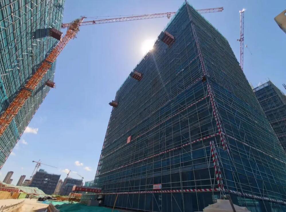 接下来我们将抢抓进度,差不多再两个月以后把脚手架拆下来,用吊篮施工,室外工程可以同步开始。