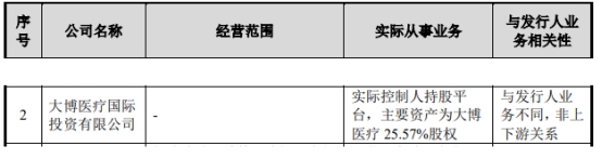 大博医疗于2017年在深交所主板上市,公司2017年9月12日披露的招股书显示,大博国际为实际控制人持股平台,主要资产为大博医疗25.57%股权。