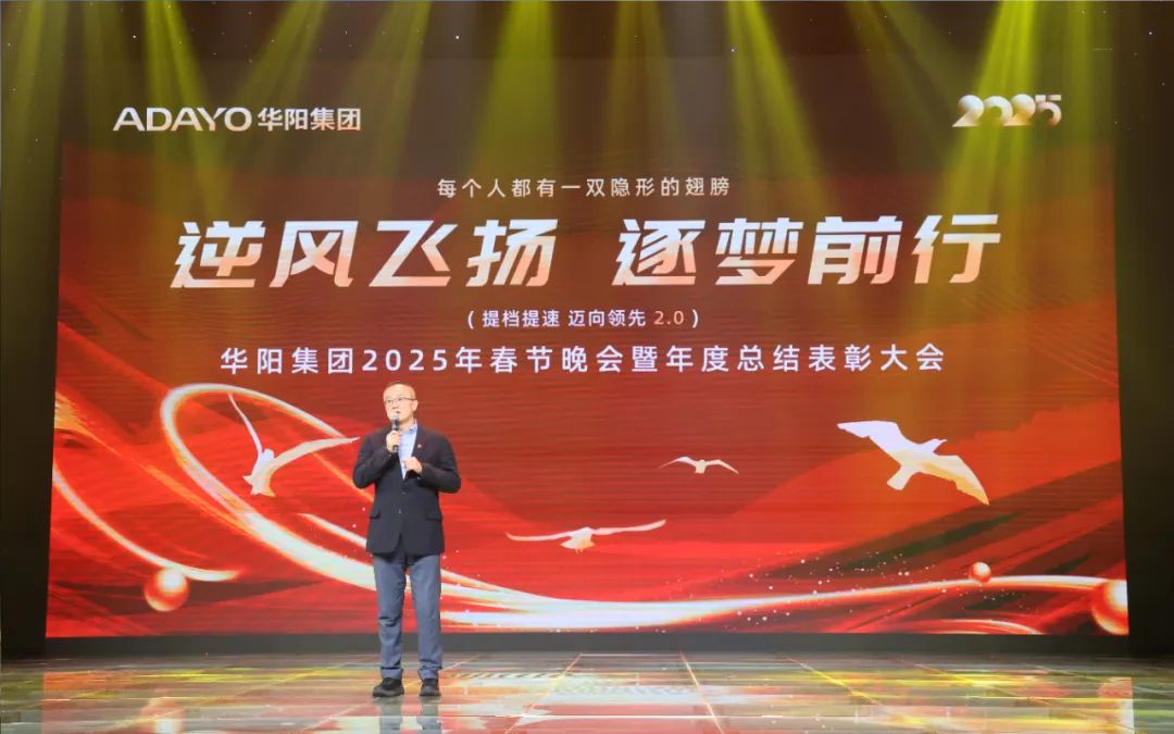2025年1月19日,在乙巳年新春临近之际,ADAYO华阳集团以“逆风飞扬逐梦前行”为主题,在惠州市广播电视台演播大厅隆重举行2025年春节晚会暨年度总结表彰大会。华阳集团近700名员工齐聚一堂,共襄盛举。