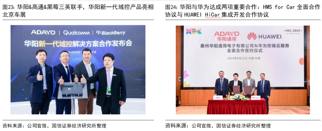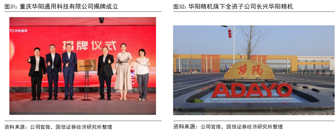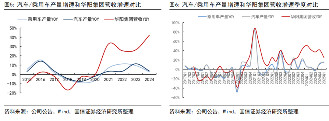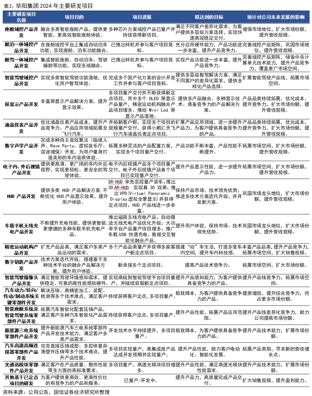 公司加速国内外布局,新产能陆续投产。为满足主要业务快速发展的需要,公司不断扩充产能并海外布局。公司定增各募投项目按计划推进中,其中汽车电子及精密压铸业务惠州新建厂房均已投产;公司使用自有资金于 2024 年在浙江长兴开发区新建精密压铸零部件生产基地,实现当年购买土地、当年建设、当年投产并成为规上企业;华阳通用于 2024 年 7 月新成立重庆、上海子公司,华阳多媒体于 2024 年 12 月新成立芜湖、西安子公司,提升本地化配套和服务能力;设立泰国、墨西哥子公司,布局海外。2025年2月26日,华阳通用旗下全资子公司——上海华阳智行科技有限公司在上海市嘉定区安亭镇传感器产业园正式揭牌启用,这是继融入重庆地方经济发展大局之后,华阳集团全资子公司华阳通用再度加码汽车电子领域,在长三角市场战略进行的关键部署。