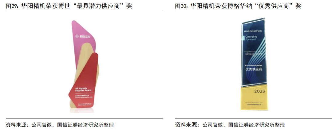 公司持续提升精密压铸产品交付表现,荣获客户认可。2024年,华阳精机获得博世“最具潜力供应商奖”、联电“最佳商务合作奖”、博格华纳传动与电池系统“优秀供应商”奖、海拉“最具价值奖”、佛瑞亚集团“价值创造奖”等荣誉。