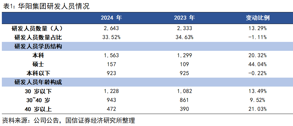 公司始终将研发作为保持和提升竞争力的重要手段,坚持以研发创新作为核心驱动力,2024年,公司研发投入8.31亿元,较上年同期增长 28.94%,占营业收入的 8.19%,公司研发人数2643人,同比增长13%,研发人员占比33.5%。公司拥有1个国家级工业设计中心(华阳通用)、多个省级企业技术中心/工程技术研究中心和多地协同的研发基地(惠州/重庆/上海/西安/大连/芜湖),涉及软件、硬件、集成、光学、算法、精密机构、精密模具等核心技术领域,积极布局前瞻性技术研究,产品和技术竞争力持续提升。截至2024年末,公司拥有有效专利988项,其中发明专利 427 项。公司致力于技术和产品创新,积极参与国家标准和行业标准的制定与修订工作,近年来先后牵头或参与十多项,涵盖了车载抬头显示器(HUD)、电子后视镜(CMS)、车载导航影音系统、智能网联汽车车载终端信息安全等多个关键领域。