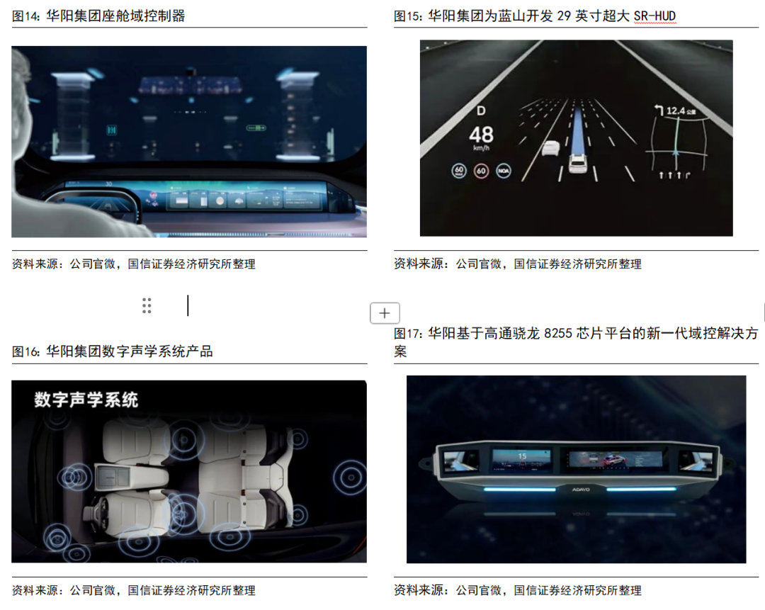 公司汽车电子业务加速产品迭代,增强用户体验。华阳开放平台(AAOP)全面迭代,AutoSAR 深度融入仪表及座舱平台,集成人工智能、3D 引擎等相关技术,推出语音大模型+情景模式,智能座舱系统竞争力再提升。HUD 产品不断技术突破,保持产品技术领先地位:率先实现 5.1 寸 SR-HUD 量产,实现超高清的虚像显示;采用变焦光学及传统光学集成的方案,推出 3D AR-HUD,实现宽幅景深投影模式,不同距离的信息显示呈现层次分明的视觉效果,沉浸感进一步增强;自研显示背光及光学设计方案,大幅提升 HUD 画质分辨率,用户体验提升。车载显示屏产品不断提高显示画面的色彩饱和度及画面精细度,公司加大对 OLED 显示、Local Diming 显示、仿内饰显示技术的研发投入。公司电子外后视镜产品首个项目成功实现量产;构建了完善且高效的光学测试体系,自研的视野仿真软件已投入使用;在产品性能方面显著提升了系统启动速度、画面亮度及流畅度、视野扩展度及软硬件可靠性等关键指标。数字声学产品持续创新,完成多种自主音效的开发落地,增强“声临其境”的用户体验。车载手机无线充电产品推出 50W 自动循迹无线充电、磁吸无线充电、48V 系统大功率无线充电产品。