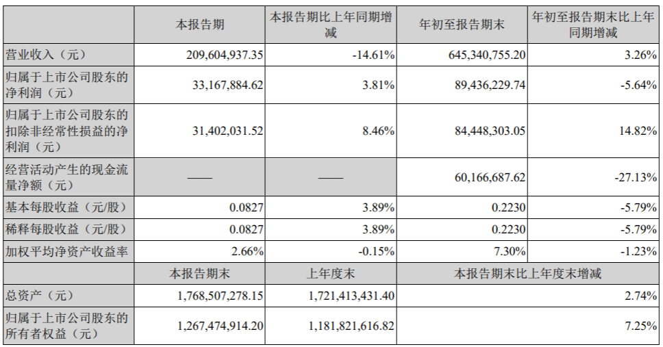 华森制药年初至报告期末实现营业收入约为6.45亿元,较上年同期增长3.26%;公司年初至报告期末实现归属于上市公司股东的净利润8943.62万元,较上年同期下降5.64%。