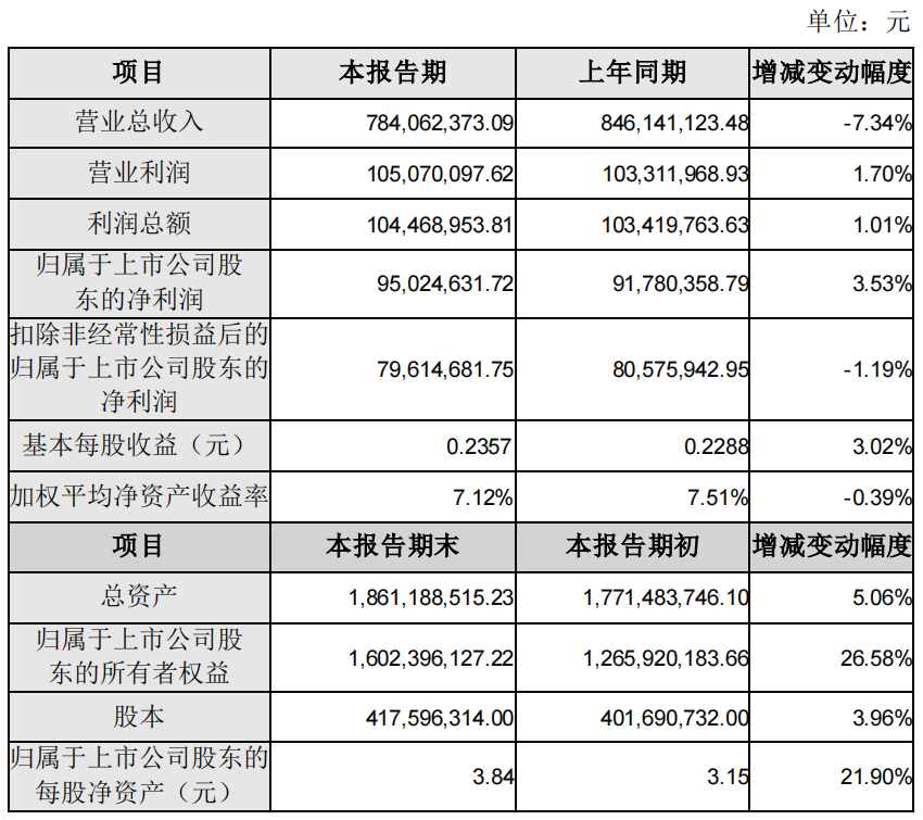 2022年度,公司实现营业利润10,507.01万元,比上年同期上升1.70%;利润总额10,446.90万元,比上年同期上升1.01%;归属于上市公司股东的净利润9,502.46万元,比上年同期上升3.53%,实现扣非后归母净利润7961.47万元,比上年同期下降1.19%。