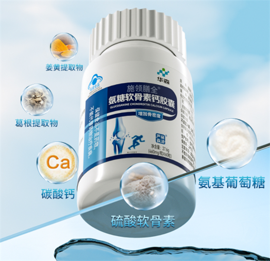 华森制药严品森活?氨糖软骨素钙胶囊,富含氨基葡萄糖与硫酸软骨素双重软骨修复因子,特别添加足量钙,协同补充关节营养;额外搭配葛根、姜黄草本精华,辅助营养物质吸收;中西结合、五效合一、温和配比,一瓶顶多瓶,有效增加骨密度,多效呵护骨关节。