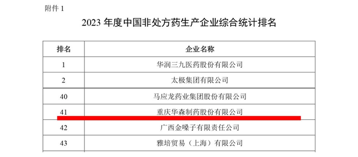 2023年12月23-24日,由中国非处方药物协会主办的首届OTC品牌大会在首都北京盛大开幕。大会发布了2023年度中国非处方药生产企业综合统计排名及2023中国OTC品牌创新优秀案例榜单,华森制药荣登中国非处方药生产企业41名,排名稳定且多产品入选多项榜单,并入选中国健康产品品类综合统计企业健康食品类13名,始终为老百姓提供吃得起的好药。