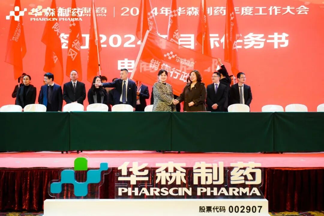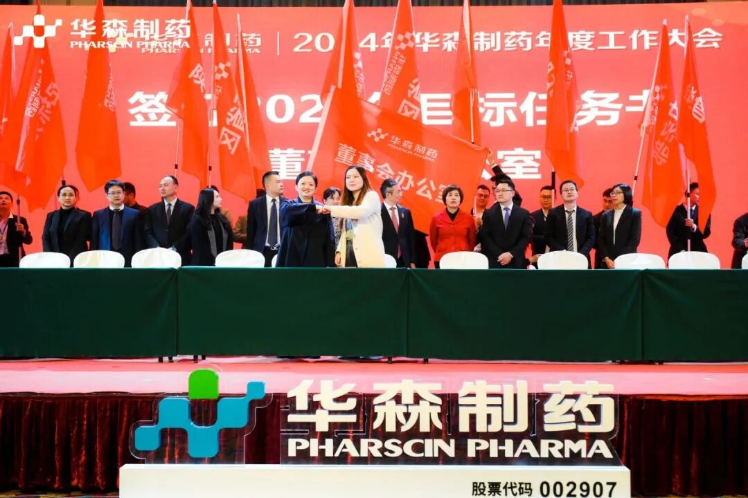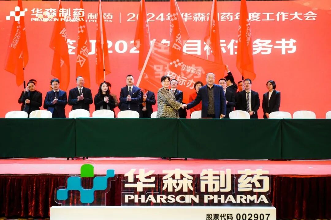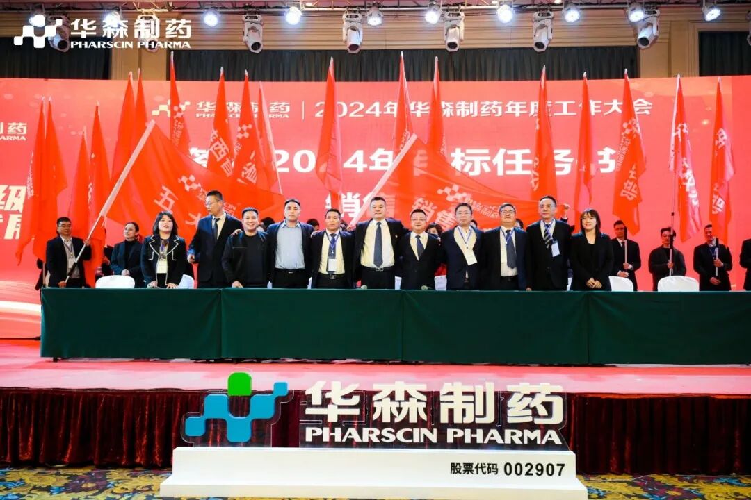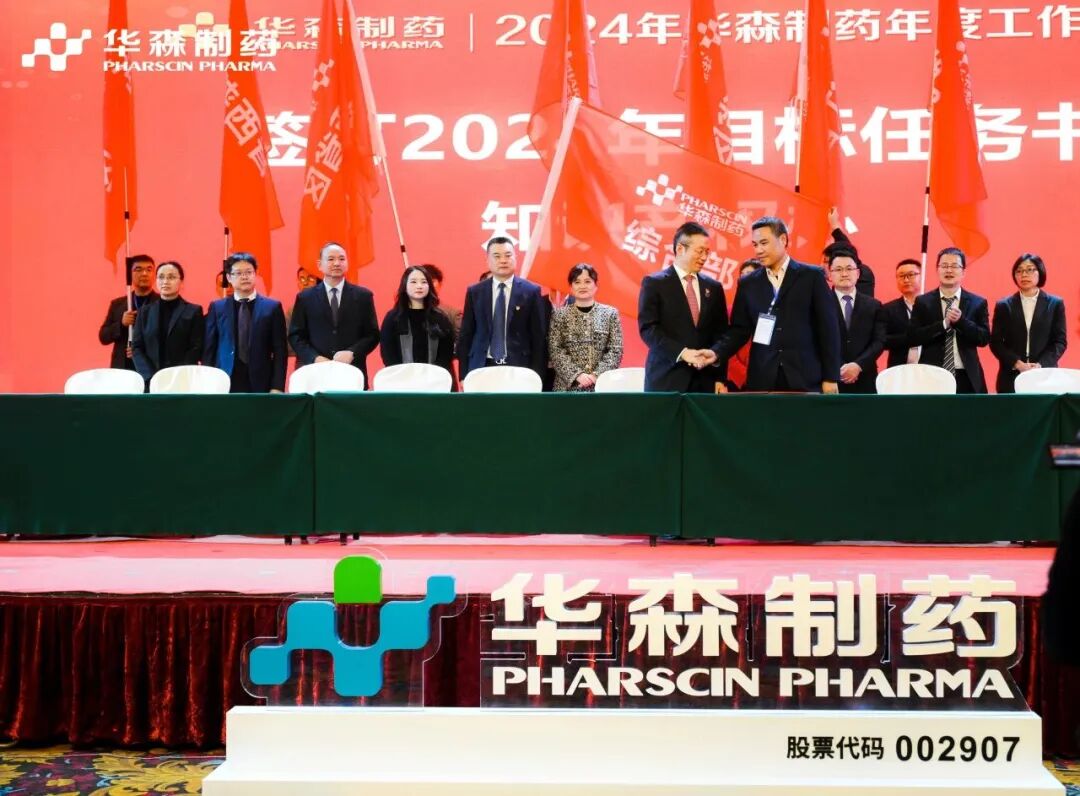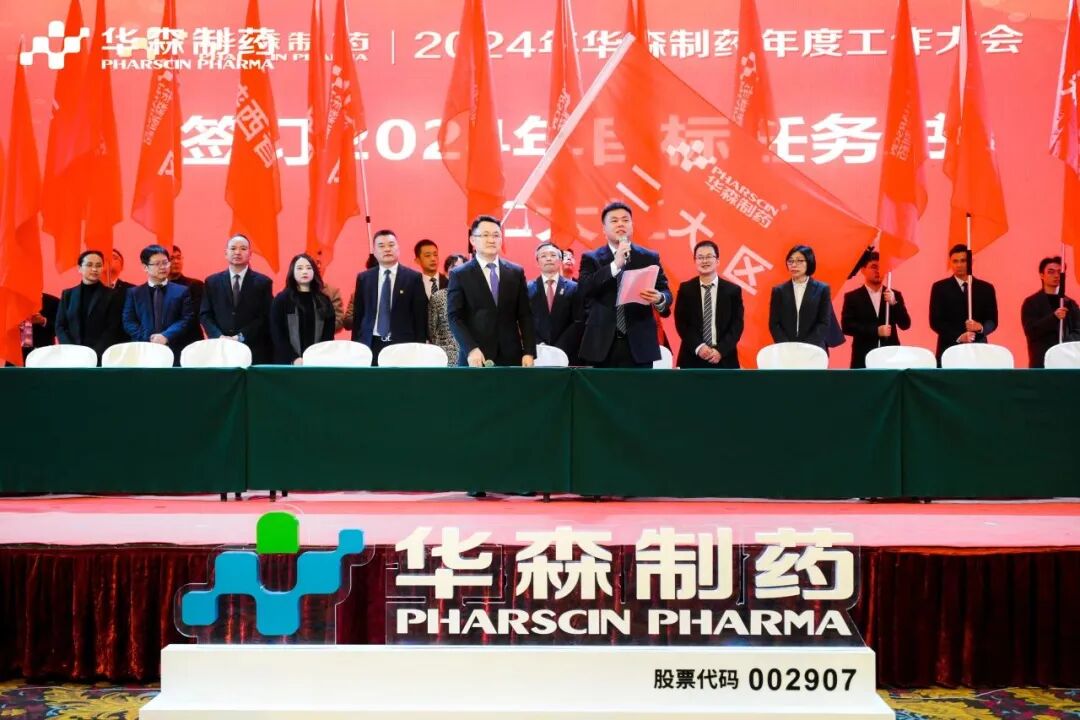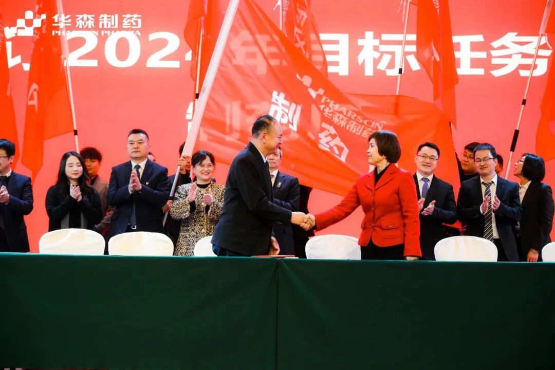为更好地完成2024年度目标,在全体与会人员的见证下,各大区、省区,华森英诺、药物研究院、制药厂、商务部、招商部、华森医药、总部各个职能部门签订了2024年目标责任书。现场舞动的旗帜、激扬的呐喊声、掷地有声的宣誓词,正式吹响了2024年新征程的号角,使命必达。