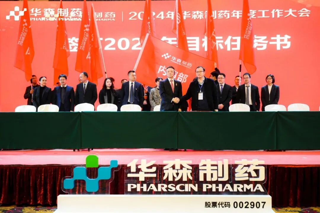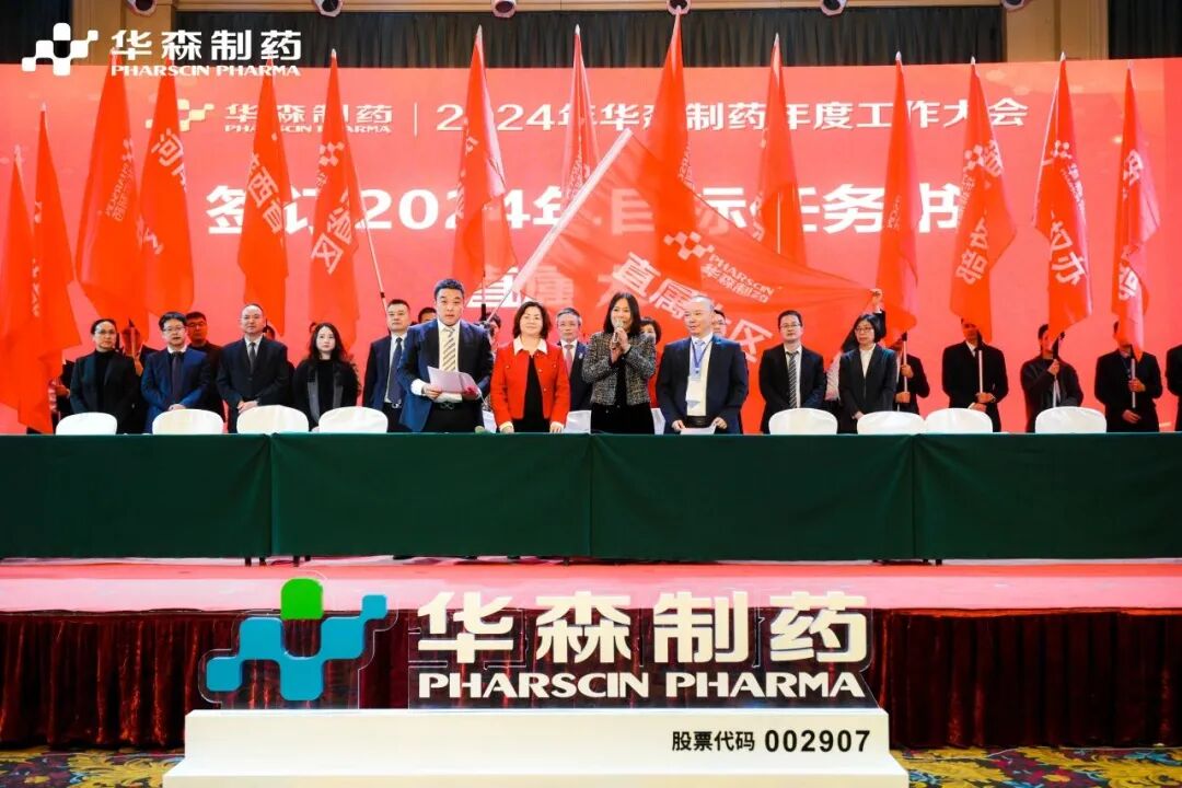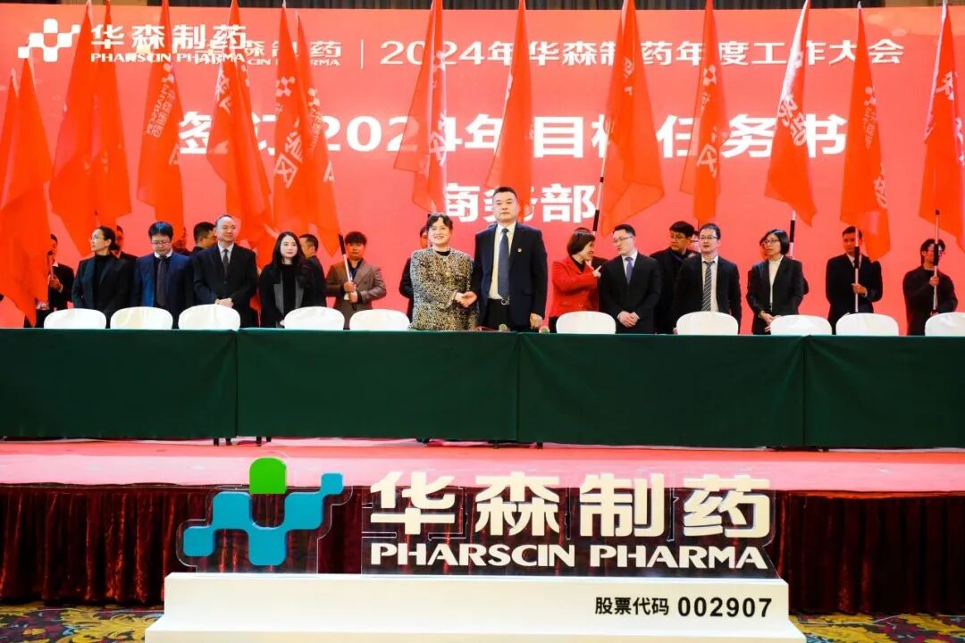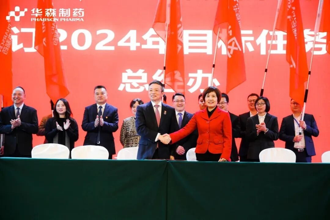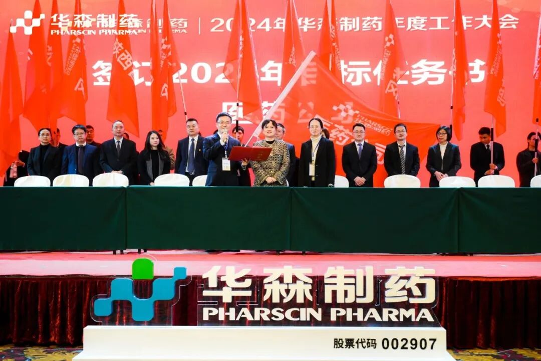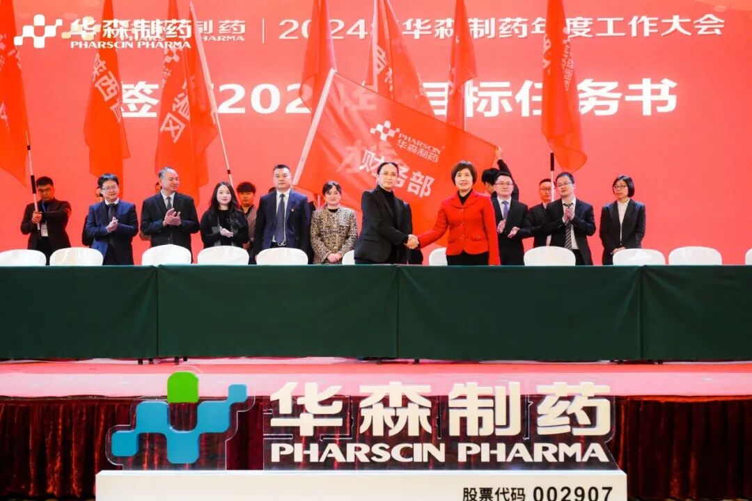 为更好地完成2024年度目标,在全体与会人员的见证下,各大区、省区,华森英诺、药物研究院、制药厂、商务部、招商部、华森医药、总部各个职能部门签订了2024年目标责任书。现场舞动的旗帜、激扬的呐喊声、掷地有声的宣誓词,正式吹响了2024年新征程的号角,使命必达。