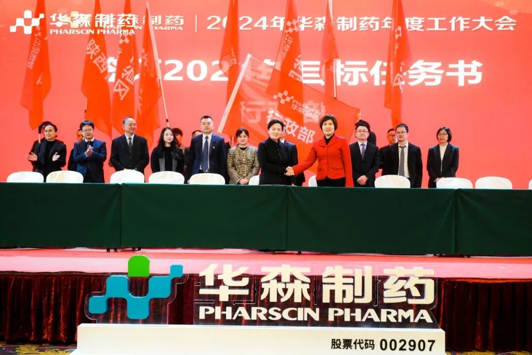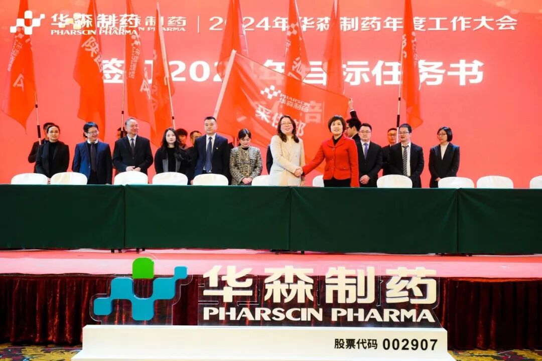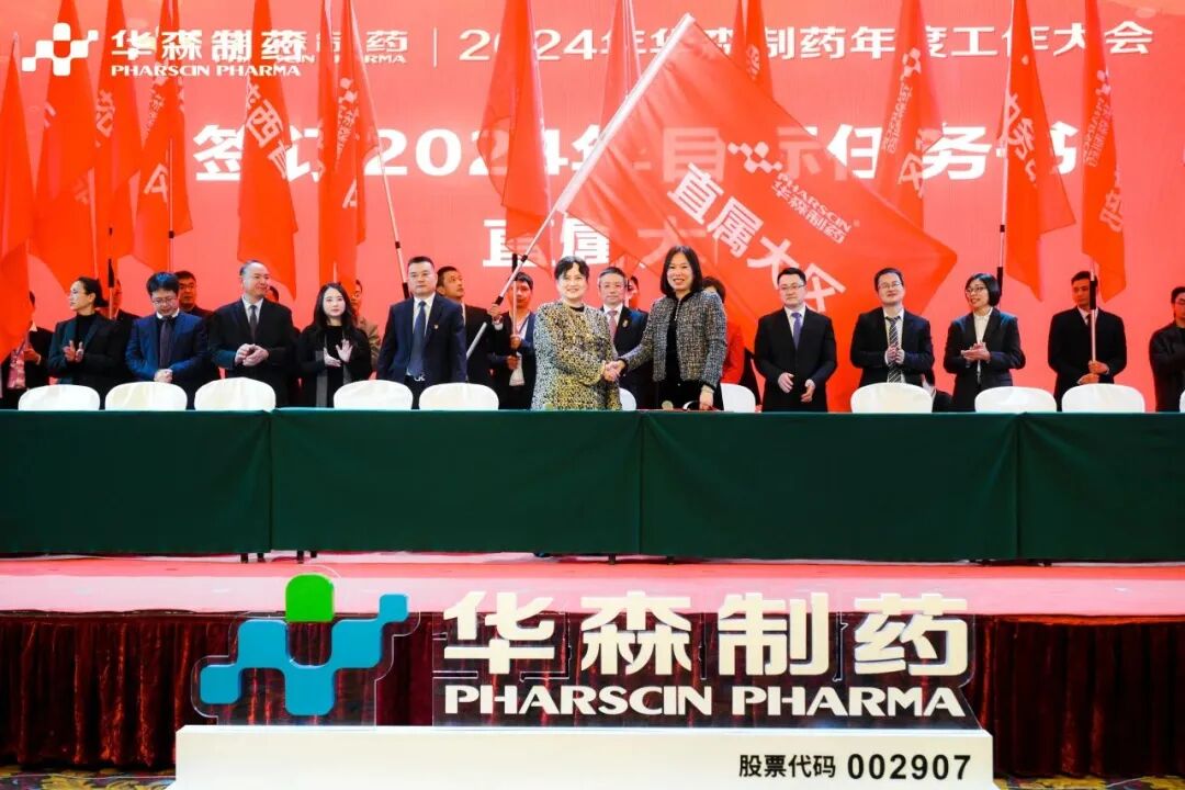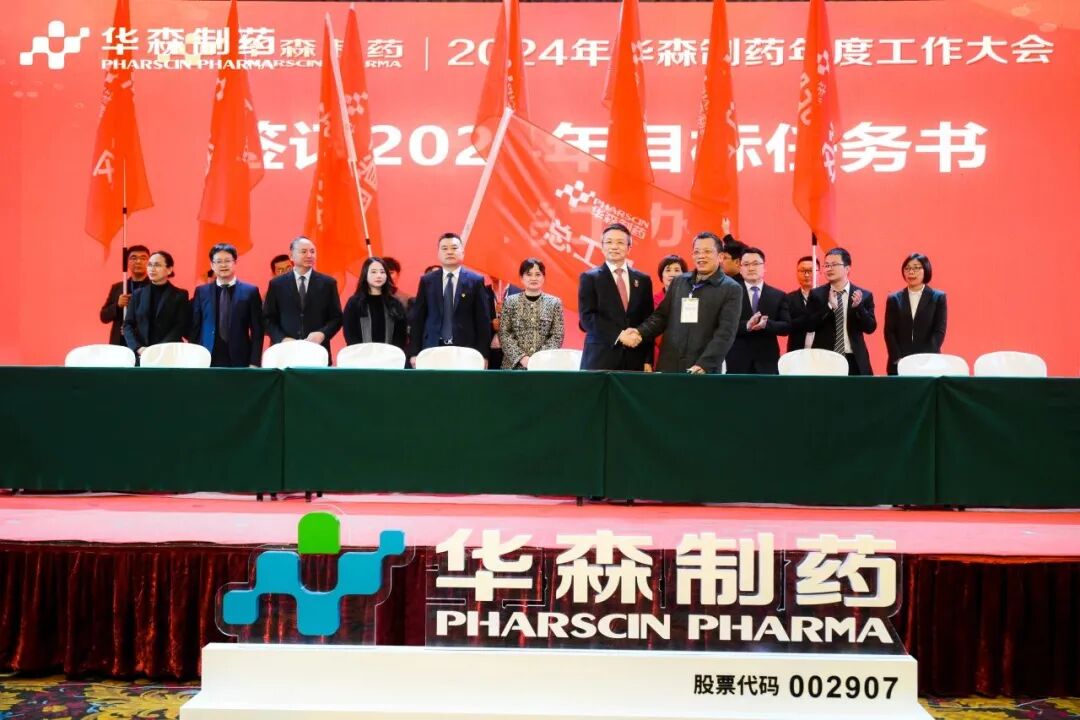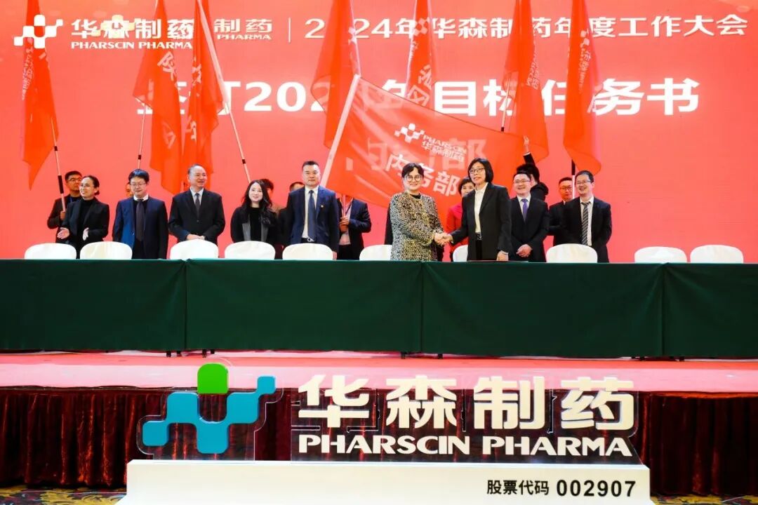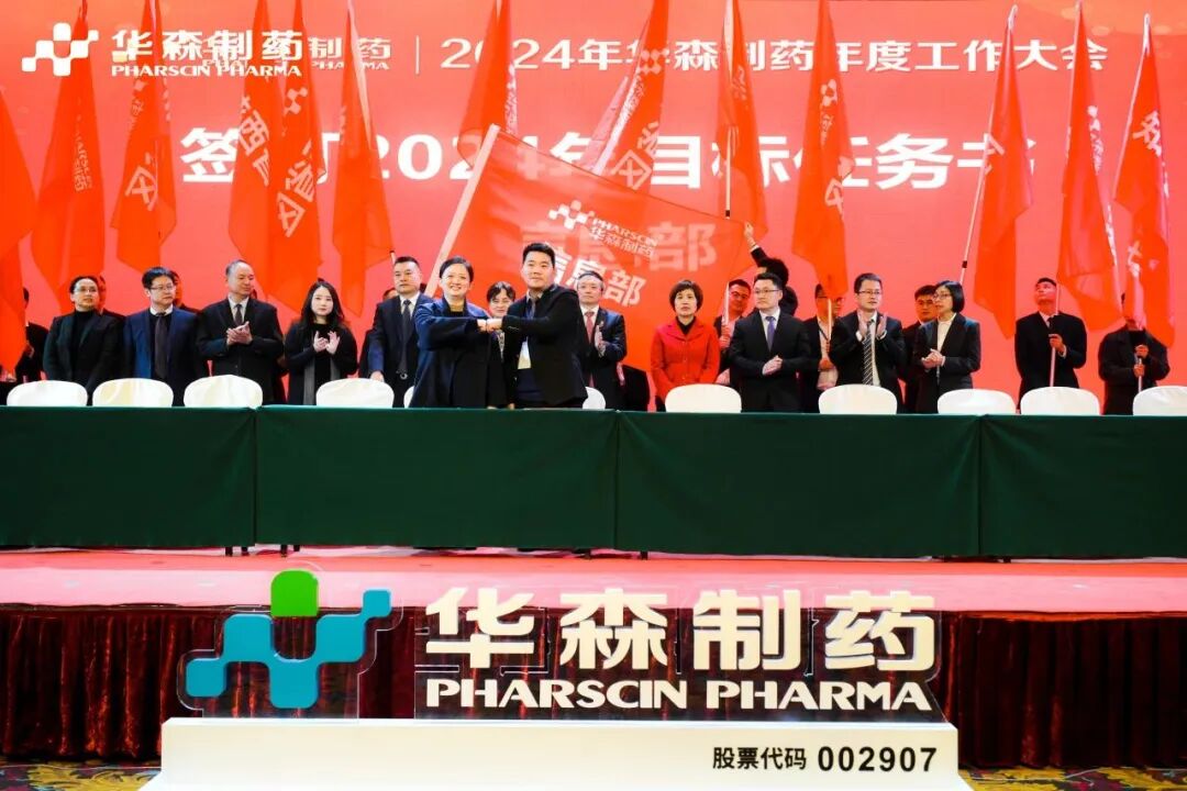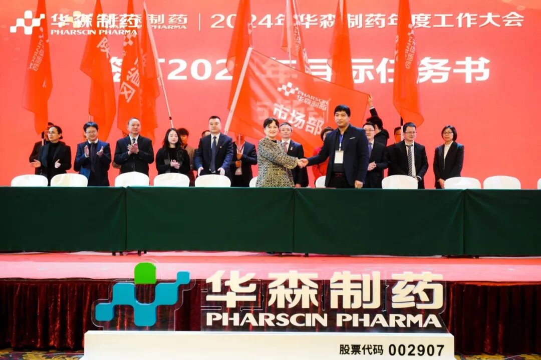 为更好地完成2024年度目标,在全体与会人员的见证下,各大区、省区,华森英诺、药物研究院、制药厂、商务部、招商部、华森医药、总部各个职能部门签订了2024年目标责任书。现场舞动的旗帜、激扬的呐喊声、掷地有声的宣誓词,正式吹响了2024年新征程的号角,使命必达。