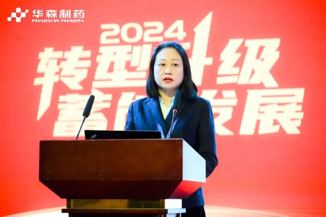华森制药副总经理王瑛作《突破自我、精耕细作、狂飙启程》主题报告,她表示,2023年,全体华森人工携手奋进、锐意进取,在研发、销售、生产等板块都取得新突破。面对2024年内外部复杂多变的发展环境,以终为始,锚定战略目标,践行“责任心、生命力”的企业理念,对标2024年制定的目标任务,充分发挥专业学术推广的营销能力、中西结合的产品布局优势、仿创结合的研发动能、数字智能化的生产势能,积极拥抱新形势、新变化、新要求,不断攀登公司发展新高峰。