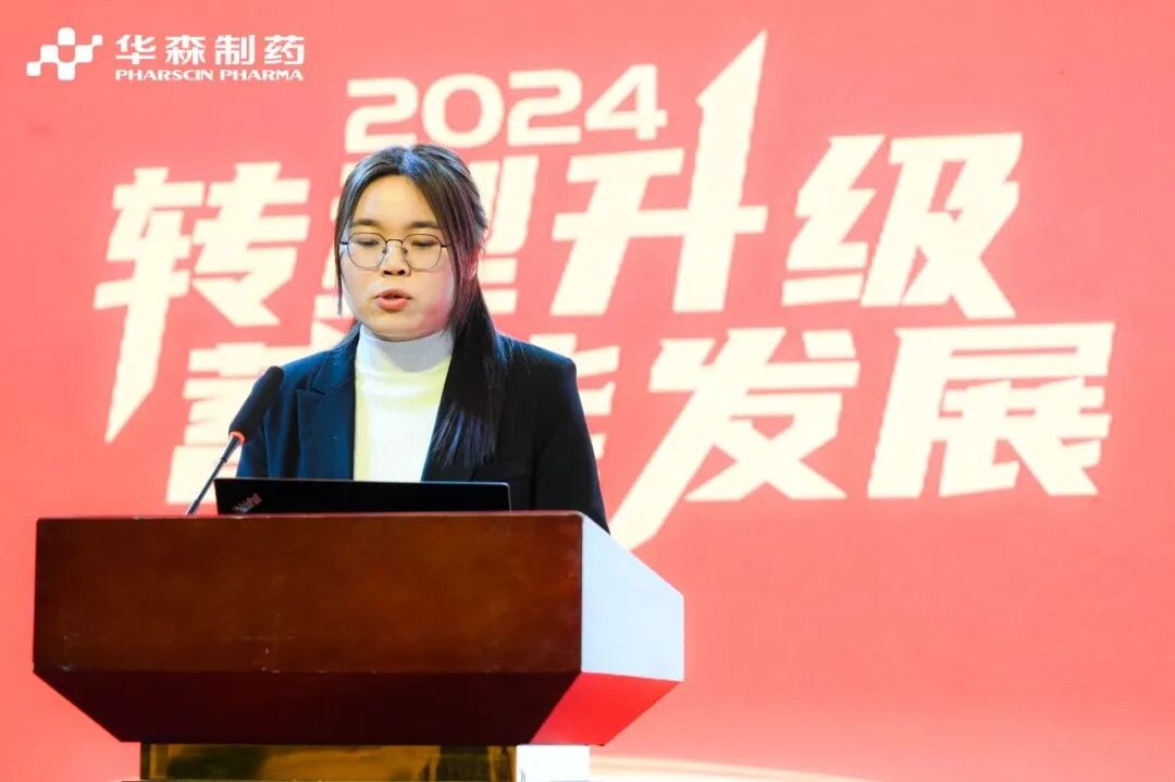 华森制药总经理刘小英作《转型升级、蓄能发展》主题报告,她总结了2023年医药产业政策、市场、机遇,各部门各项工作总结,分析讲解了2024年医药市场预判、机遇与挑战。她表示,全体华森人要顺应政策市场变化,抢抓发展机遇,持续加大研发投入和科技创新力度,做好生产、研发、销售协同高质量发展,加快形成企业自身的新质生产力;强化制度建设与管理提升,聚焦公司2024目标任务,加快转型升级、蓄能发展,不断开拓华森制药高质量发展新局面。