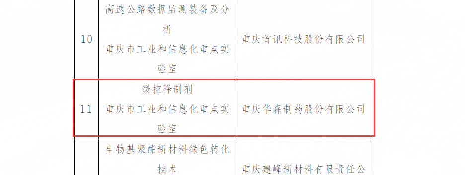 重庆工业和信息化重点实验室作为工业和信息化领域技术创新体系的重要组成部分,是开展高水平研发活动、促进科技成果转化的重要基地。华森制药“缓控释制剂工业和信息化重点实验室”作为公司重要研发平台,致力于缓控释制剂技术的研发与创新。此次上榜不仅是对华森制药在缓控释制剂领域技术创新能力的认可,也是对公司在推动行业技术进步和产业升级方面所做贡献的肯定。