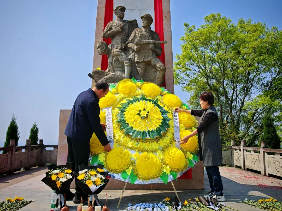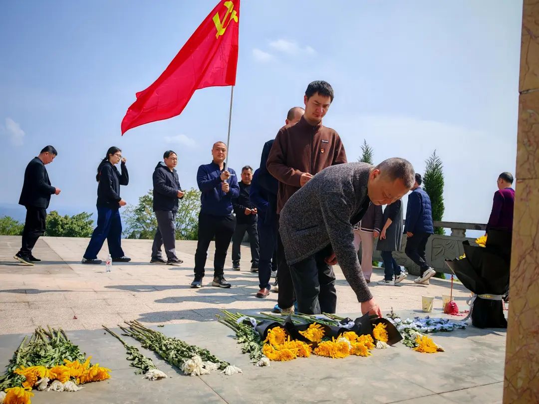 青山巍巍埋忠骨,白菊朵朵寄哀思。在庄严肃穆的铜鼓山英烈纪念园,全体党员整齐列队,聆听讲解员讲述铜鼓山阻击战中革命先烈浴血奋战、壮烈牺牲的英雄事迹。伴随着低回的《献花曲》,华森制药党委副书记、副总经理、制药厂总经理黄介,华森制药党委副书记、党支部书记、总经理助理曹莉代表抬着"革命精神永垂不朽"缎带的花篮缓步走向烈士纪念碑,全体人员肃立默哀,依次敬献小白花,向烈士墓三鞠躬并默哀致意,朵朵素白菊花寄托着对英烈的深切追思。