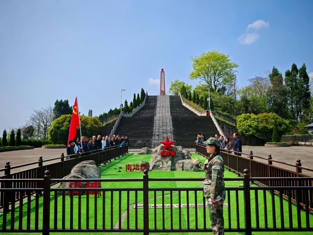 "我志愿加入中国共产党……"面对鲜红的党旗和巍峨的烈士纪念碑,全体党员高举右拳重温入党誓词。铿锵誓言在山谷回荡,既是对革命先烈的庄严承诺,更是新时代党员的使命接力。踏着先烈足迹,党员们重走铜鼓山战役行军路线。陡峭山径上,当年战斗遗址的弹痕弹孔清晰可辨,党员们在"移动党课"中感悟革命艰辛。党员们纷纷感慨:"先辈们用鲜血染红的战旗,如今交到了我们手中,必须接续奋斗。"
