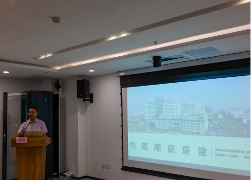 南京医科大附属淮安市第一人民医院顾东升主任报告主题为《内镜颅底重建》,详细介绍了内镜颅底重建及内镜颅底外科修复的创新性方法。