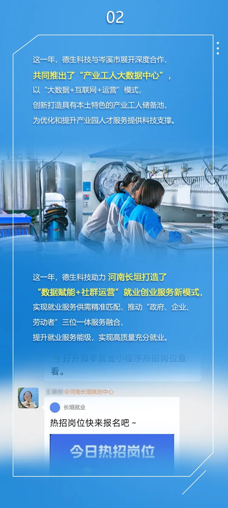 2023年,德生科技持续以“数据赋能+互联网运营”创新就业服务模式,搭建“活的”就业大数据底座,实现市场服务快速撮合和个人服务精准触达,彰显了数字化公共就业服务的强劲动能。
