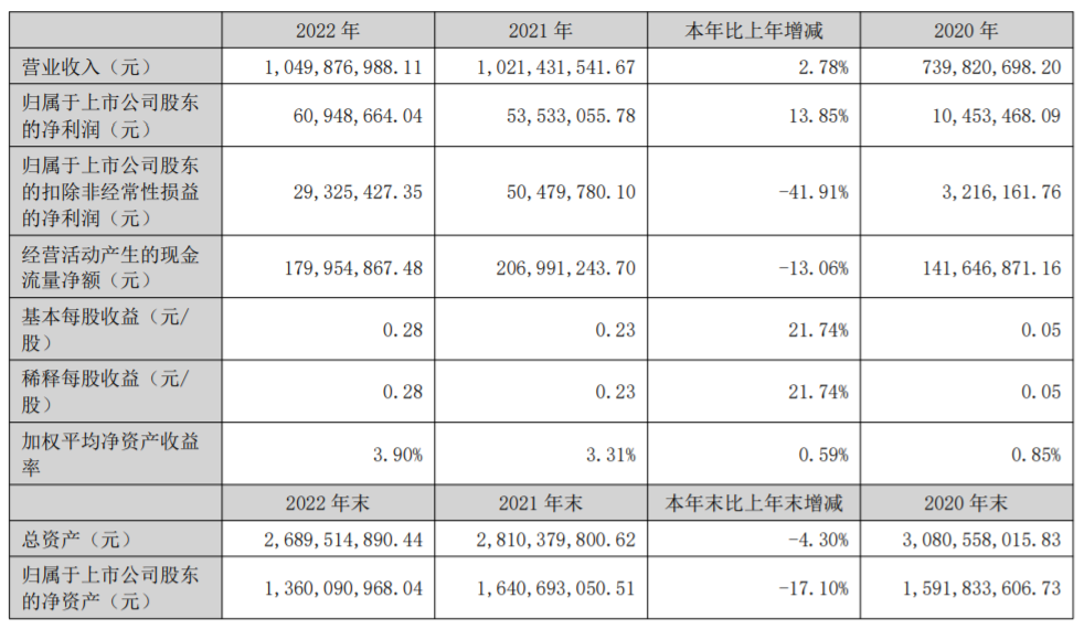 2022年,庄园牧场实现营业收入约为10.50亿元,较上年同期增长2.78%;实现归属于上市股东的净利润约为6094.87万元,较上年同期增加13.85%。