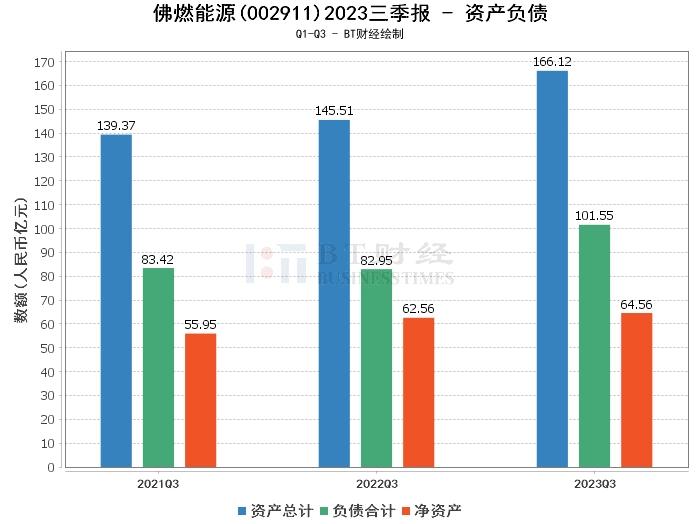 首先,我们来看一下佛燃能源的资产负债情况。2023年三季度末,公司的总资产达到166.12亿元,相比上年度末的147.92亿元,增长了12.30%。负债合计为101.55亿元,上年度末为83.63亿元。净资产为64.56亿元,上年度末为64.29亿元。资产负债率为61.13%,上年度末为56.54%。这些数据显示,公司的资产规模在不断扩大,但同时负债也有所增加,资产负债率有所上升,这可能意味着公司在扩大规模的同时,财务风险也有所增加。