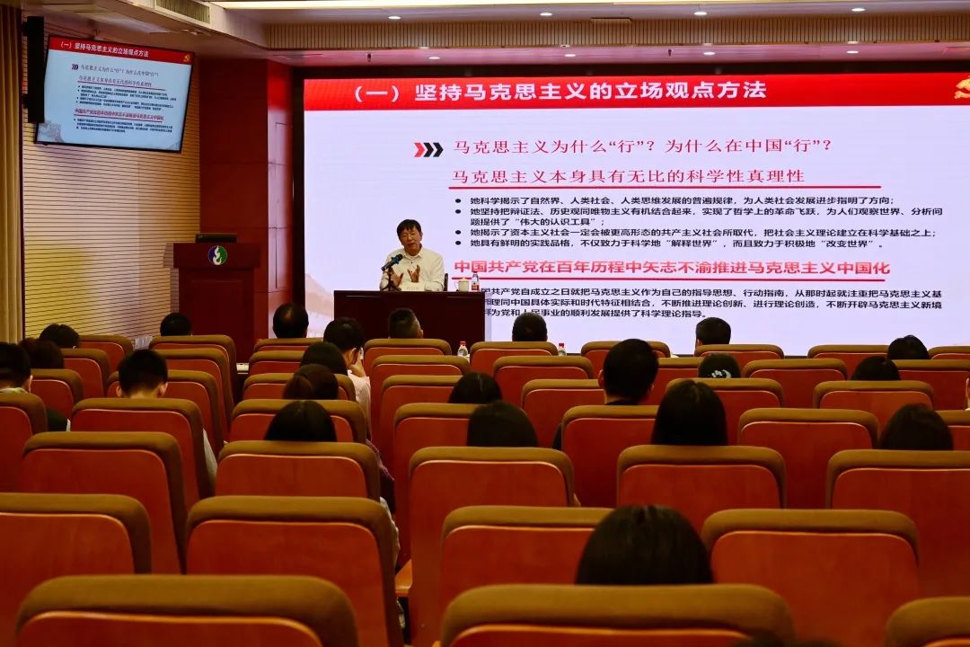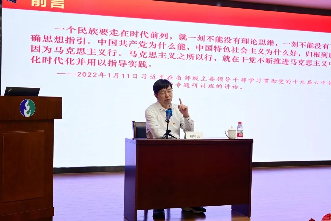 会上,穆向民教授以《开辟马克思主义中国化时代化的新境界》为题,围绕“为什么要马克思主义时代化中国化”“马克思主义中国化时代化的新成果”以及“坚持马克思主义的中国化时代化”三个方面,对学习领会习近平新时代中国特色社会主义思想进行系统、全面的阐述。