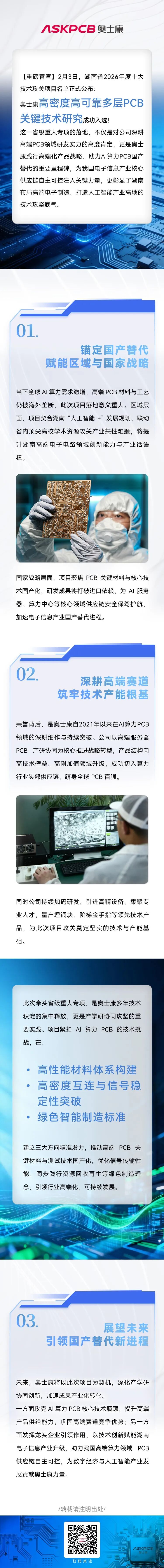 硬核突破!奥士康入选2026湖南十大技术攻关项目,以技术攻坚赋能AI算力PCB国产替代