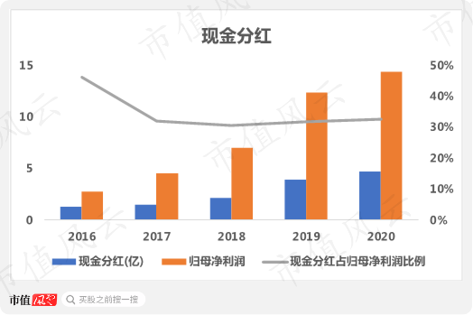 从2016年至2020年,公司归母净利润总计40.8亿,累计分红13.4亿,总分红占比为32.7%。