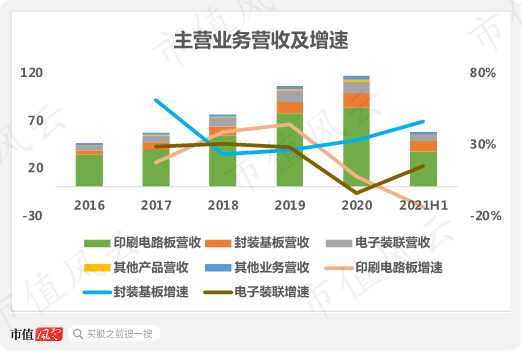 主要原因是由于公司营收占比最大业务PCB营收增速出现严重下滑,2021年上半年同期同比下降超10%。