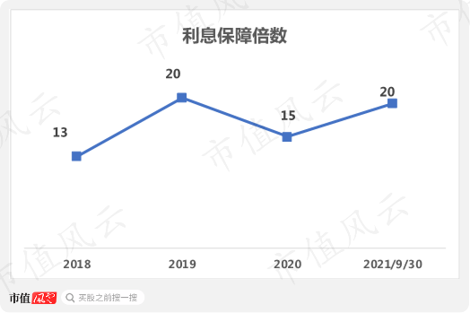 2018年-2021年前三季度,公司的利息保障倍数也处于较高水平,三季报数据显示达到了20倍,公司债务流动性良好。