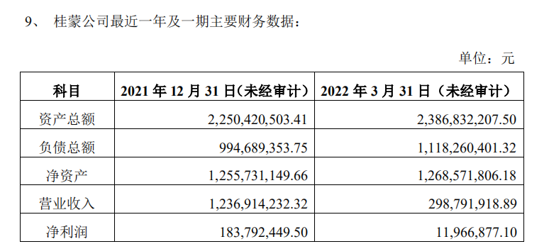 “桂蒙公司”成立于2018年,是蒙娜丽莎位于广西藤县生产基地的运营主体。公告显示,“桂蒙公司”2021年度实现营业收入12.37亿元,净利润1.84亿元;2022年1月~3月实现营业收入2.99亿元,净利润1196.69万元(未经审计)。