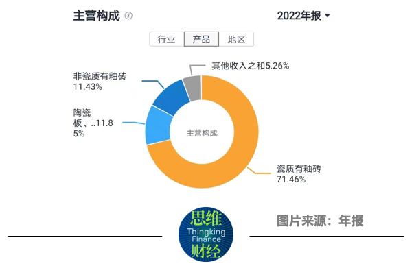 主营业务收入构成显示,蒙娜丽莎2022年的营业总收入为62.29亿元,其中瓷质有釉砖的销售收入达44.51亿元,占总营收的71.46%;陶瓷板及薄型陶瓷砖的销售收入为7.38亿元,占总营收的11.85%;非瓷质有釉砖的销售收入为7.12亿元,占总营收的11.43%;其余收入则来自瓷质无釉砖等其他产品。