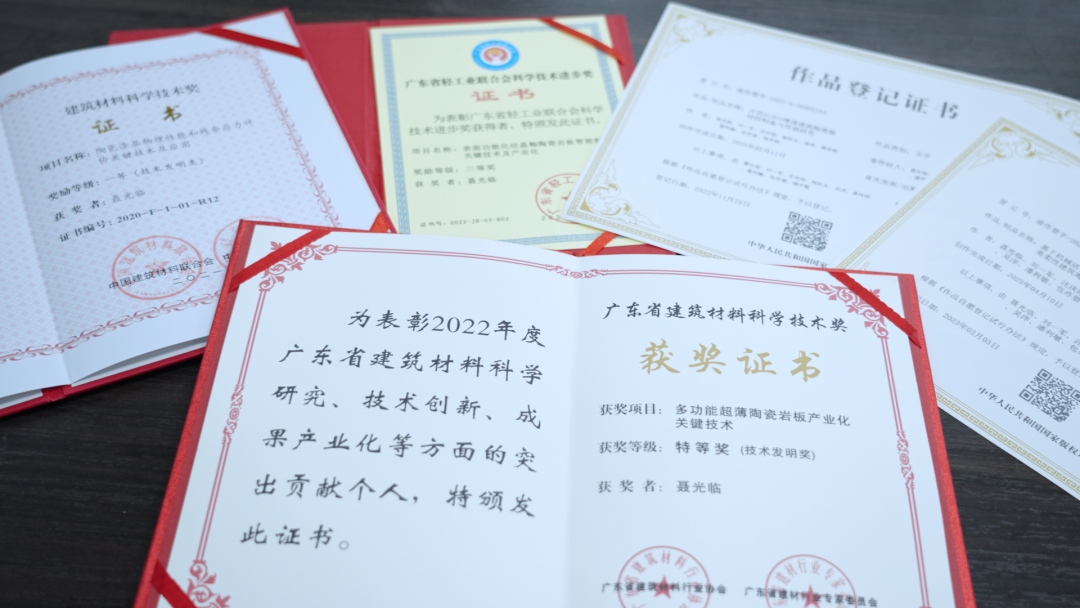经历千万次实验测试,解决研究过程中的困难,聂光临博士最终成功制备出高强韧超薄陶瓷岩板和储能调温陶瓷板材,并推动研究成果转化落地和产业化。