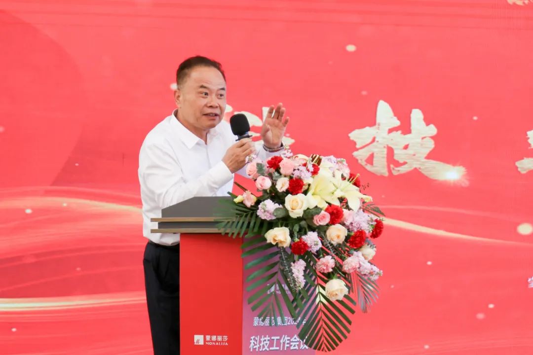蒙娜丽莎集团董事、总裁萧礼标博士在总结发言中对蒙娜丽莎科研创新工作开展提出了两点要求:一是通过创新做出蒙娜丽莎具有稀缺性、唯一性、带有蒙娜丽莎特色的经典产品;二是围绕双碳目标,通过技术消化碳中和成本,提升产品市场竞争力。