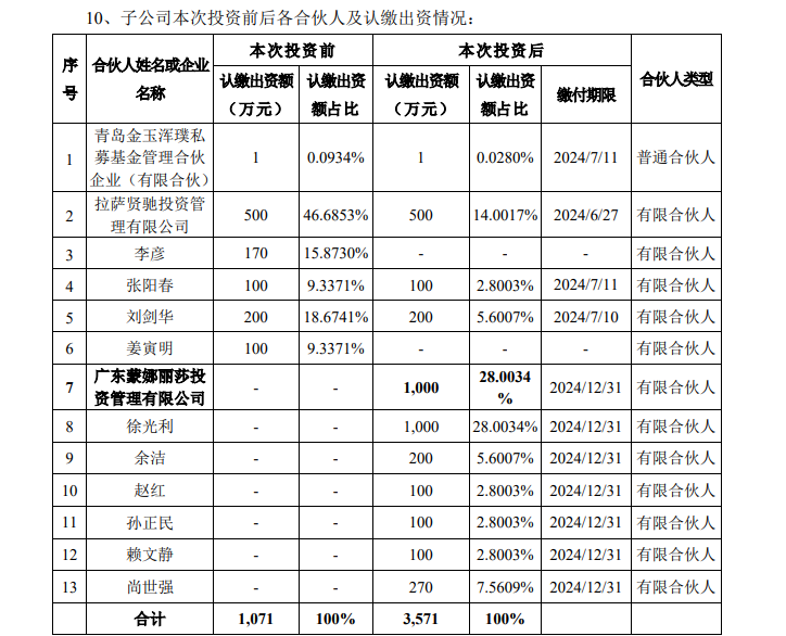 为提升综合竞争能力,蒙娜丽莎作为有限合伙人与专业投资机构共同投资。