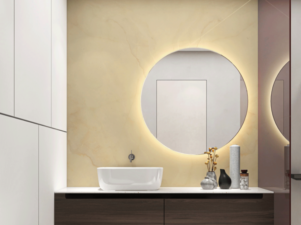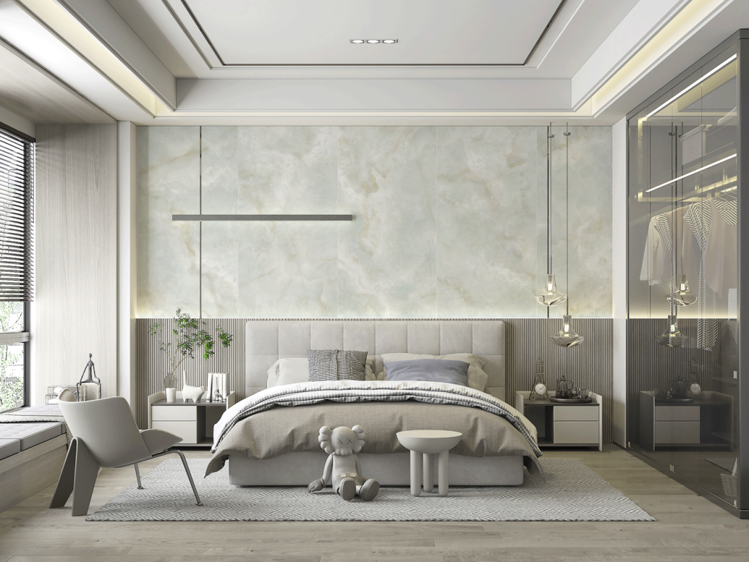 项目产品立体渗花透光玉石陶瓷大板规格为900mm×1800mm×(5.5-10)mm。