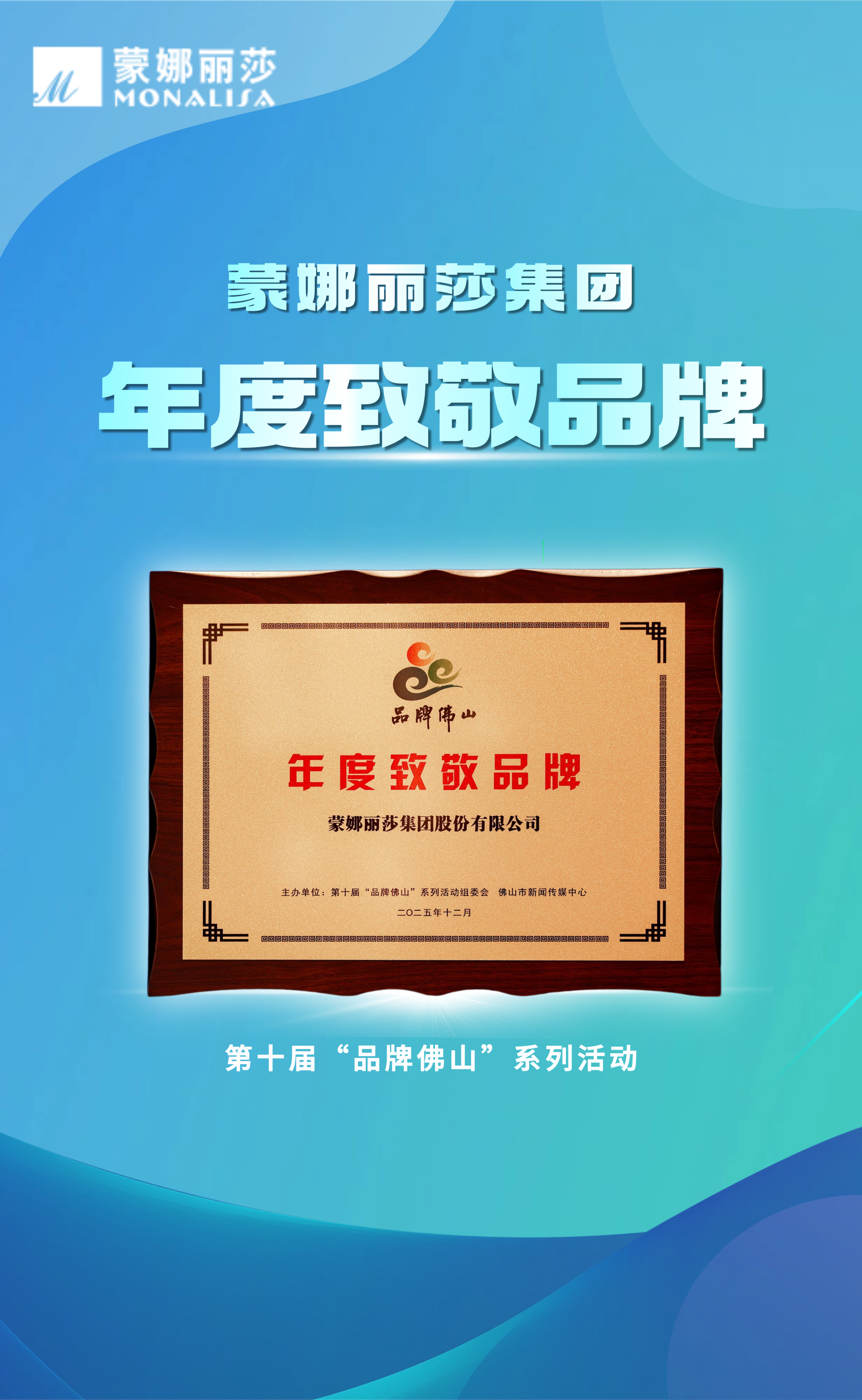 大会同步举行第十届“品牌佛山”系列活动, 蒙娜丽莎 集团荣膺“年度致敬品牌”称号,凭借出类拔萃的市场成绩、产品品质、技术革新、服务水平等,诠释“有家就有佛山造”的品牌底气,引领中国建陶品牌迈向更广阔的市场,赋能产业发展。