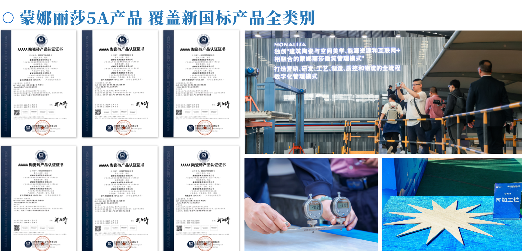 蒙娜丽莎 在行业内率先推出5A产品,实现“5A”标准产品稳定量产的生产衔接与产品结构调整、生产体系革新。在消费品分级和质量竞赛的市场趋势和挑战下,保持品牌竞争力和韧性,为消费者提供更优质的产品。