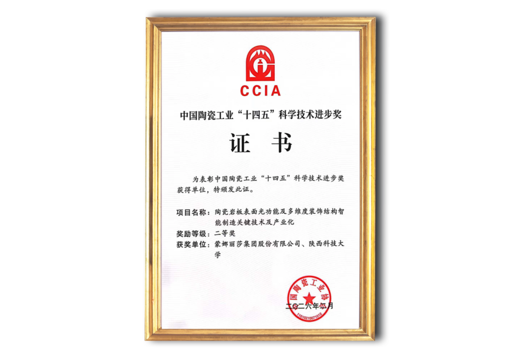■ “陶瓷岩板表面光功能及多维度装饰结构智能制造关键技术及产业化”项目获中国陶瓷工业“十四五”科学技术进步奖二等奖