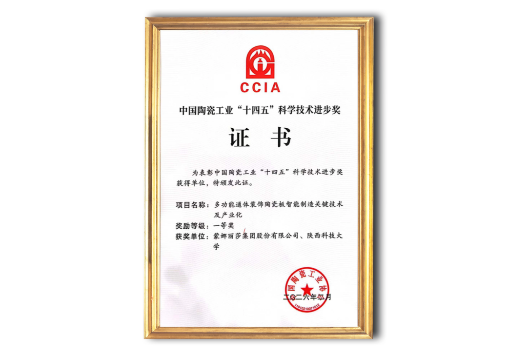 ■“多功能通体装饰陶瓷板智能制造关键技术及产业化”项目获中国陶瓷工业“十四五”科学技术进步奖一等奖