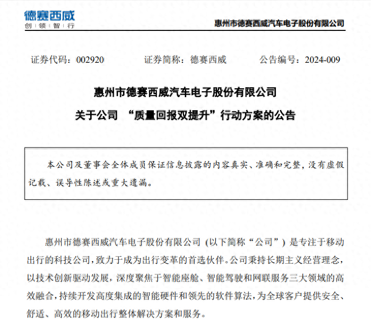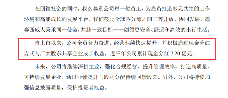 瑞财经赵盼盼 3月4日,德赛西威在关于公司“质量回报双提升”行动方案的公告中提到,自上市以来,公司经营业绩快速提升,并积极通过现金分红方式与广大股东共享企业成长收益,近三年公司累计现金分红7.2亿元。