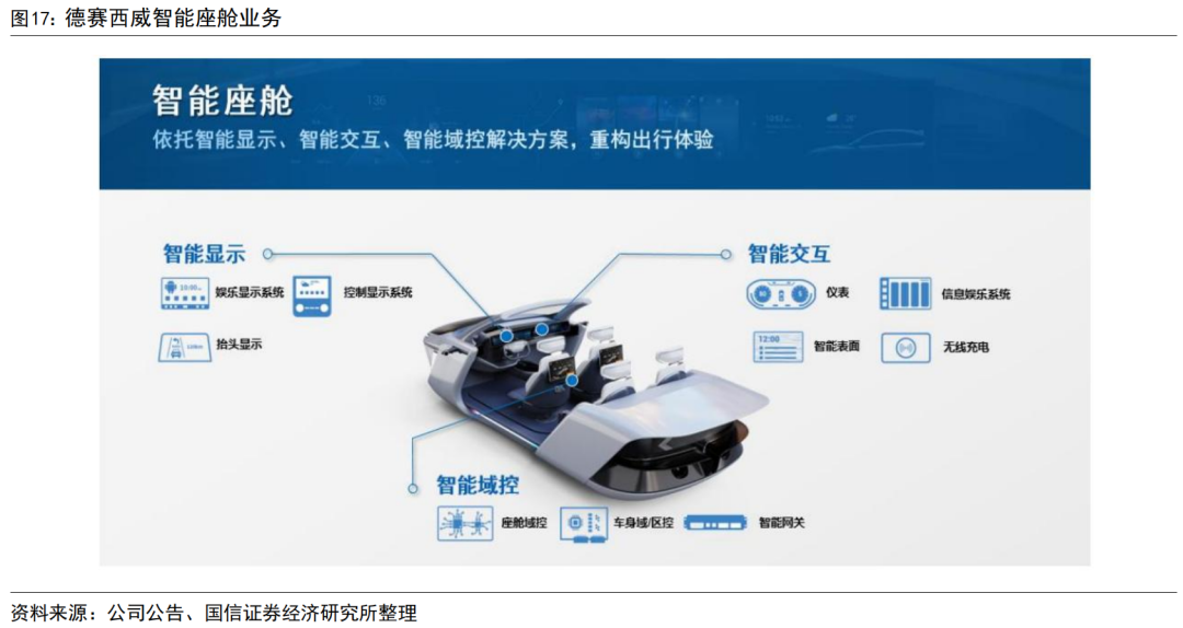 智能座舱方面,公司致力于构建满足未来智能化出行场景下的新人机交互关系。基于对未来用户出行场景体验的理解,依托智能交互系统、智能显示硬件、智能域控硬件、智能计算解决方案,重构出行体验,满足用户在用车场景下的个性需求,为用户提供安全舒适,轻松便利的出行体验。2023 年,在产品组合多元化和市场延伸策略的推动下,公司智能座舱业务继续保持快速增长,全年营业收入和新项目订单年化销售额均突破 150 亿元。