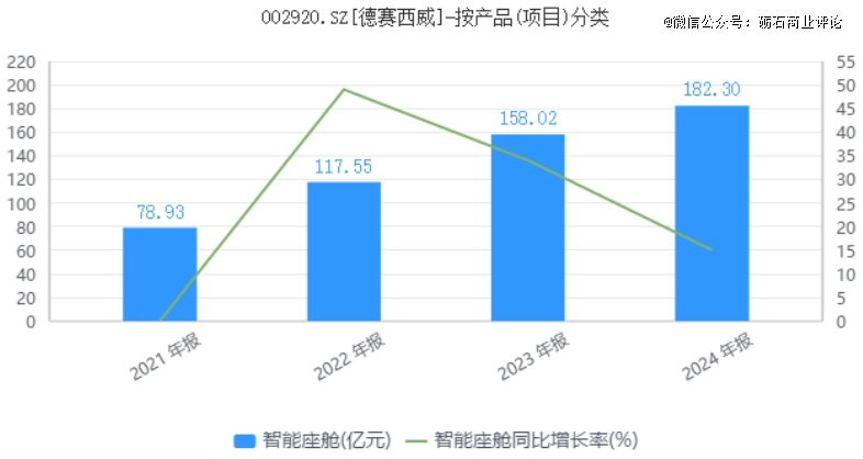 数据显示,2021年-2024年,德赛西威智能座舱业务营收从78.93亿元增长至182.3亿元,四年时间内实现了翻倍增长。截至目前,公司第四代智能座舱已在理想汽车、小米汽车、吉利汽车等客户规模化量产,并持续获得广汽乘用车、吉利汽车、广汽埃安等客户新项目订单。根据盖世汽车研究院数据,2024年,德赛西威座舱域控制器国内市场占有率达到16.1%,成功超越特斯拉的代工厂和硕、广达,位居行业*位。