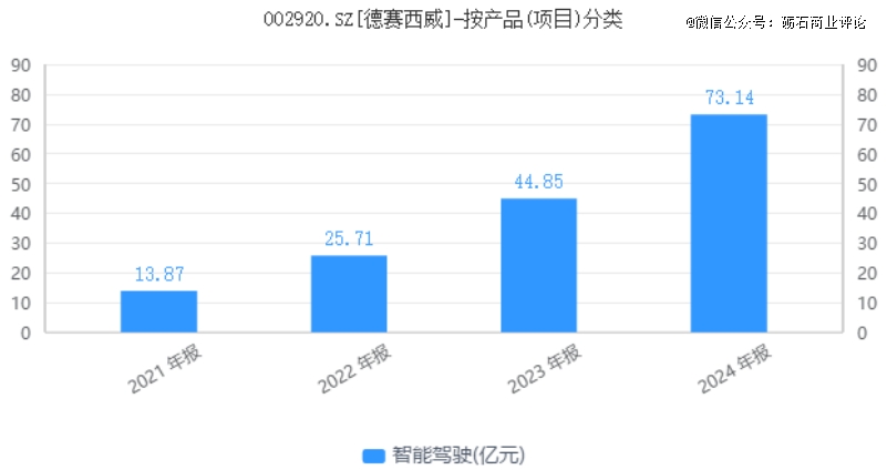 数据显示,2021年-2024年,德赛西威智能驾驶业务营收从13.87亿元大幅攀升至73.14亿元,成为公司增速最快的业务。2025年上半年,德赛西威智能驾驶业务营收占比已经达到28.32%,表明公司已经在智能座舱主业之外成功开辟出第二增长曲线。