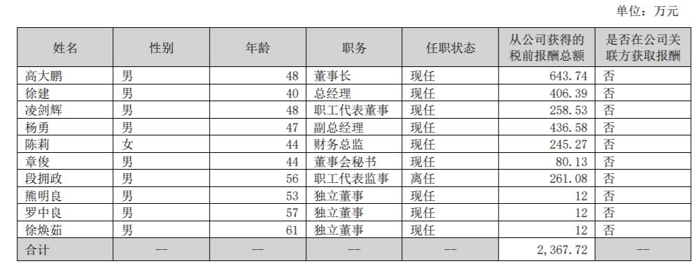 2025年,高大鹏薪酬为643.74万元,较2024年的519.84万元增加了123.9万元,涨幅23.8%。