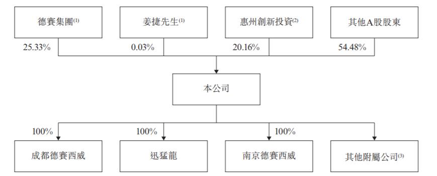 IPO前,德赛西威由德赛集团持有约25.33%及由姜捷直接持有0.03%。德赛集团由德恒实业全资拥有。