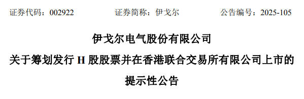 来自广东佛山的A股上市公司伊戈尔(002922.SZ)发布公告称,为进一步推进公司国际化战略、提升公司国际形象及综合竞争力,公司拟发行境外上市股份(H股)并申请在港交所主板挂牌上市。