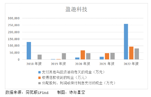 虽然3000万左右的利息费用与获得的利润相比不算什么,但2022年盈趣一边借入大量借款,一边疯狂买理财,并且还坚持一贯的豪放分红,就让人看不懂了。