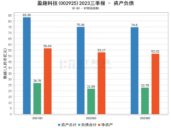 在资产负债方面,盈趣科技的总资产由上年度末的77.57亿元降至本报告期末的74.8亿元,负债合计由上年度末的22.98亿元降至本报告期末的22.78亿元。净资产由上年度末的54.59亿元降至本报告期末的52.02亿元,资产负债率由上年度末的29.62%上升至本报告期末的30.45%。