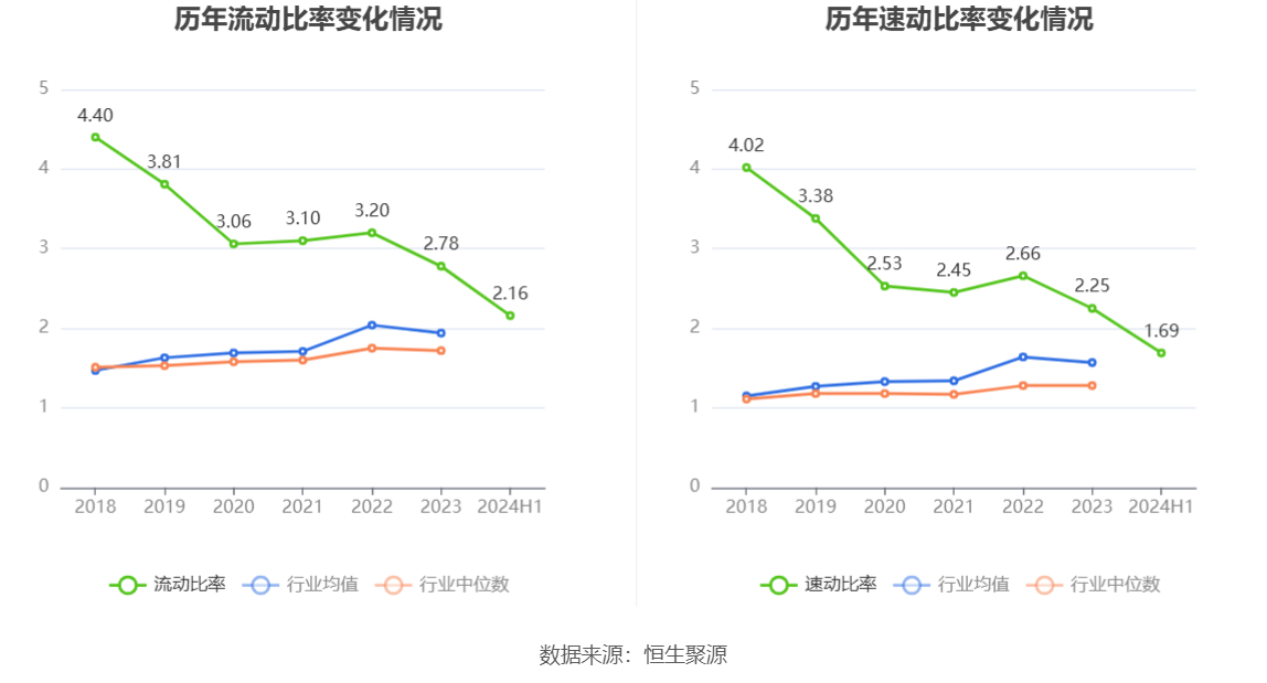 2024年上半年,公司流动比率为2.16,速动比率为1.69。