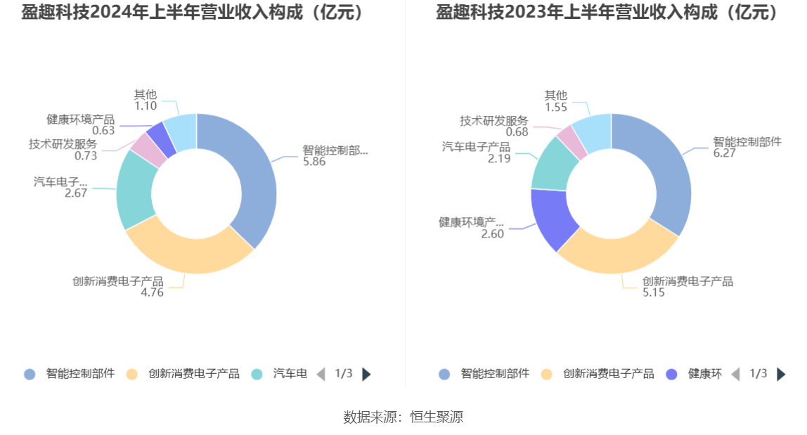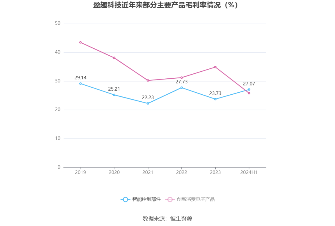 分产品看,智能控制部件、创新消费电子产品、汽车电子产品2024年上半年毛利率分别为27.07%、25.81%、29.80%。