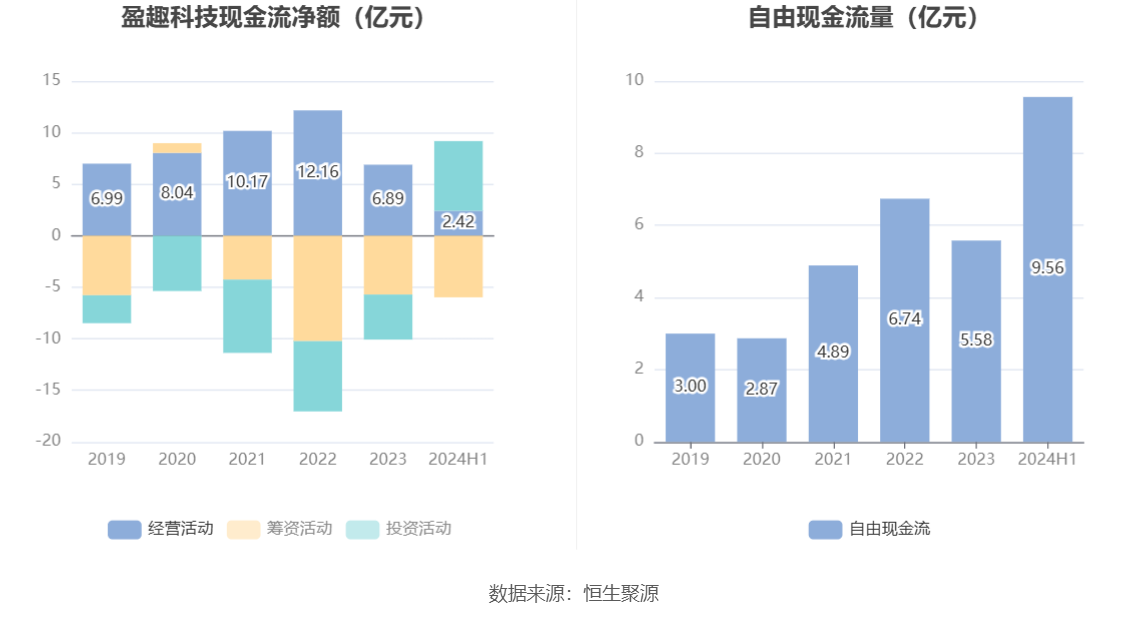 进一步统计发现,2024年上半年公司自由现金流为9.56亿元,相比上年同期增长77.54%。